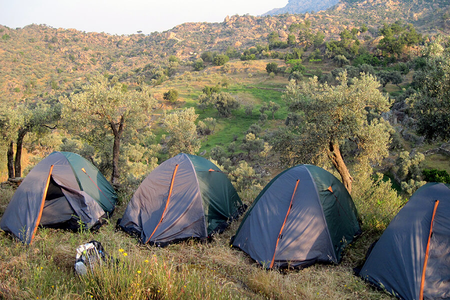 We rise with the sun and enjoy an abundant breakfast around the fire, fortifying us for today’s climb to the summit of the Latmos Mountain range at 1375 m. Our walking time today will be 6-7 hours. On the way, we visit Stylos Monastery perched high in the mountains and dating back to the 10th century. It is known for several stunning monastic frescoes and was the home of St. Paul the Younger, who is said to have lived here as a hermit for twelve years. The remaining ascent to the summit – also called Tekerlek Dağı locally – is not long. Our hike is rewarded with a breathtaking 360° view of Bafa Lake and its islands to our south, and the Anatolian plain to the north. We will descend back to 1250 m to a small freshwater spring to make our camp for the evening. Time really stands still for us in our mountain camp this evening.